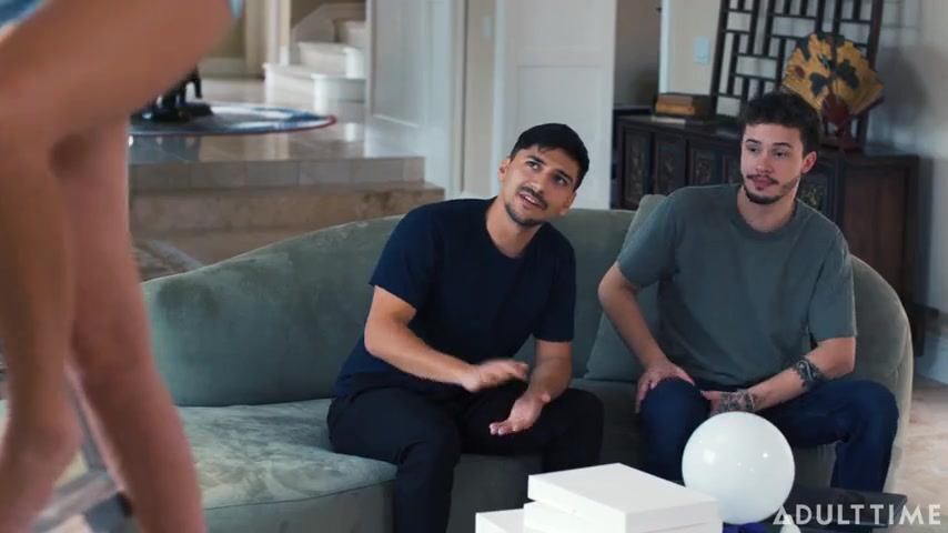 Max Fills arrives at his friend Apollo Banks's house and runs into Pristine Edge, who is Apollo's stepmom. Pristine is on a stepladder, setting up the living room for an upcoming party as she warmly greets Max. As Max sits down nearby and makes smalltalk with Pristine, he notices that she isn't wearing any underwear, which shocks but entices him. When Apollo enters, Max takes him aside and tells him that Pristine isn't wearing panties! Although Max is taken aback at first, even HE can't help but be enticed. The boys then conspire to 'help' Pristine set up the party so that they can sneak peeks up her skirt...Pristine is thrilled that the boys seem to want to help her, not suspecting their true intentions. The boys help Pristine with various tasks while secretly finding ways to hungrily look up her skirt. In an attempt to get a more prolonged view of Pristine's pussy, the boys offer to give her a foot rub together. However, Pristine soon catches them staring up her skirt and realizes that she isn't wearing underwear.Instead of being angry at the boys for sneaking peeks up her skirt, Pristine is surprisingly flattered and aroused, which leads to a cheeky threesome!